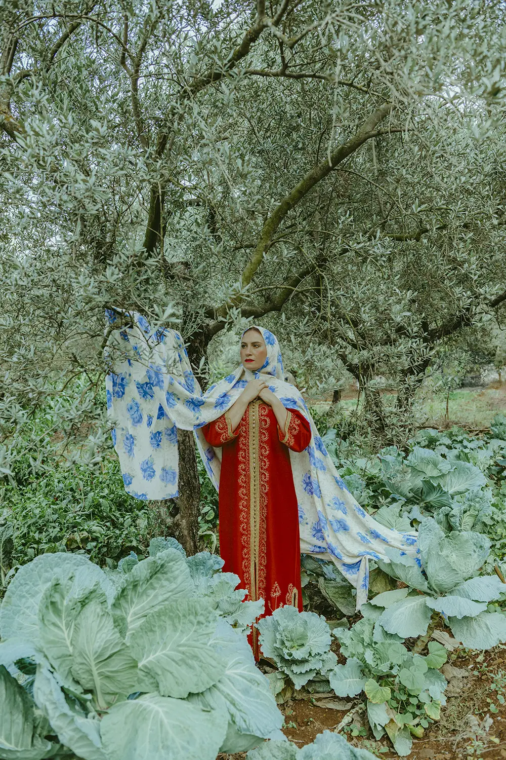 Feda Eid is a Lebanese diaspora photographer and visual artist living in the occupied lands of Wampanoag and Massachusett People – so called Quincy,MA. Her work explores the expression of heritage, culture, identity and often tense but beautiful space between, what is said, what is felt and what is lost in translation. She captures these emotions through her bold use of color, textiles, adornment and pop culture, linking the past and present. Feda is guided by her family’s journey as Lebanese immigrants who fled the country’s civil war and her childhood growing up as an Arab and Muslim in the US.