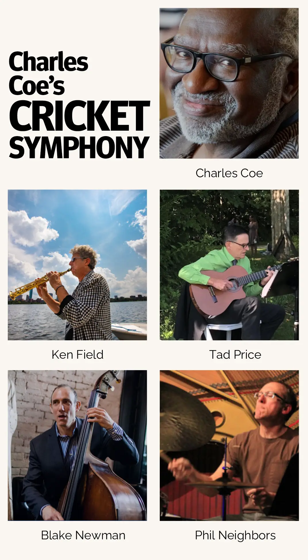 Charles Coe’s Cricket Symphony is a new collection of poetry & music based on the poetry of award-winning African American writer & musician Charles Coe, with music including original compositions by Ken Field.