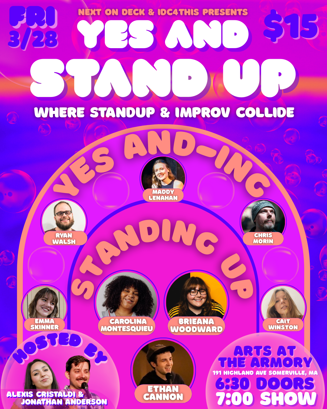 3 stand ups performing 10 mins each, and an indie improv team using those sets to inspire a 25 min set!!