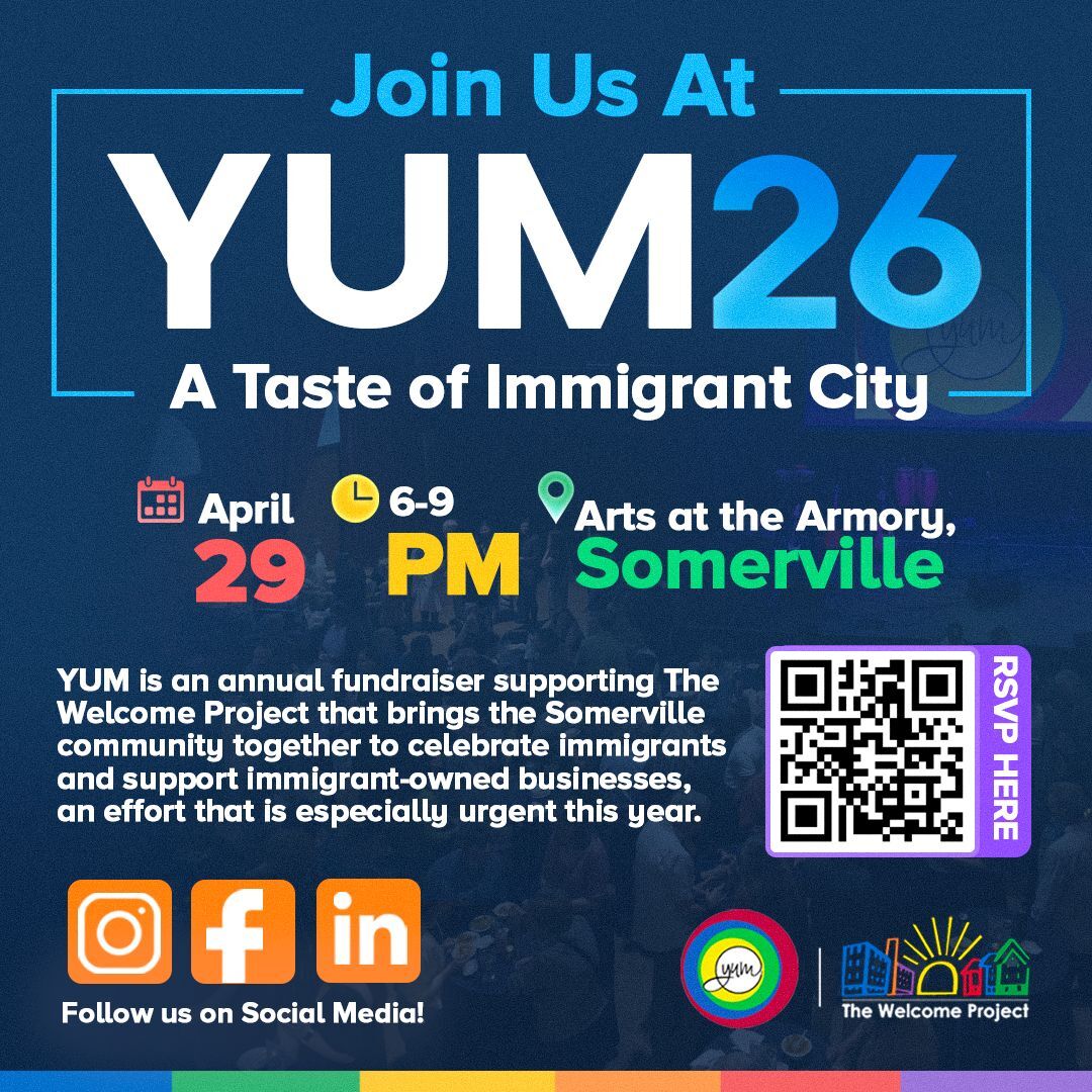 YUM: A Taste of Immigrant City is an annual celebration and fundraising event that creates a unique opportunity for hundreds of people living in Somerville and surrounding communities to come together in support of the immigrant communities served by The Welcome Project.